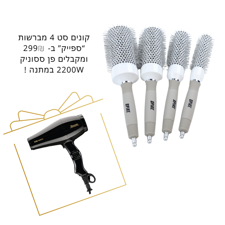 קונים סט 4 מברשות פן "ספייק" ומקבלים מייבש שיער ססוניק ותיק רחצה במתנה