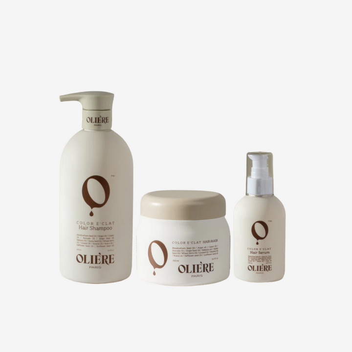 סט טיפוח לשיער אולייר פריז שמפו 500 מ"ל+מסכה+סרום לשיער צבוע או פגום | OLIERE PARIS COLOR E'CLAT